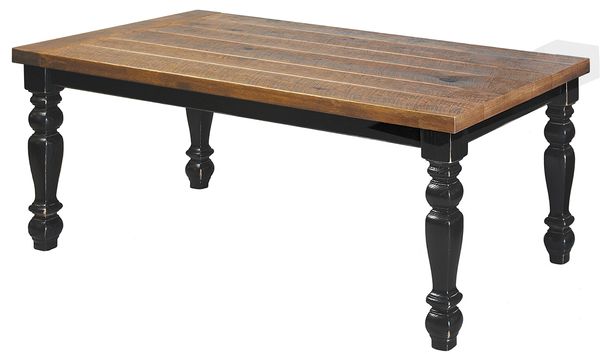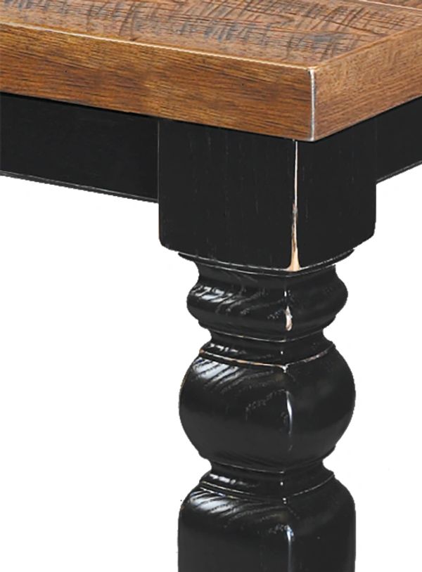 7 Piece Set. Roughcut Oak medium tone Top & distressed black Base. Table 72 L x 42 W x 30 H