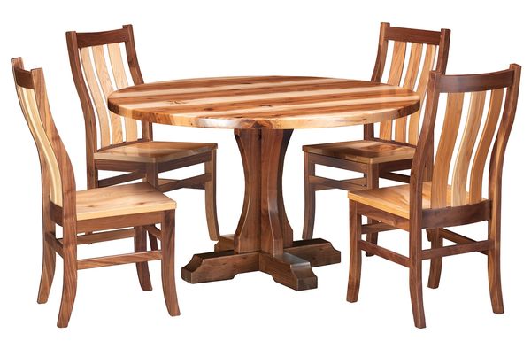 5 Piece Set. Rustic Hickory Top and Walnut Base with natural finish. Table 50D x 30H